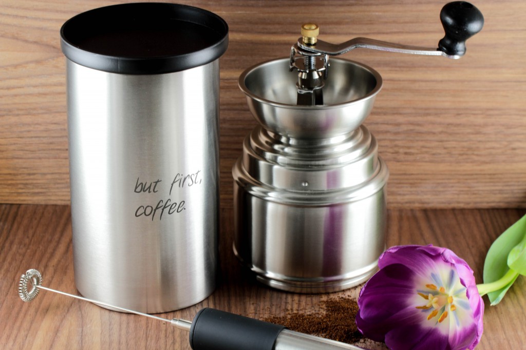 Frisch gemahlener Kaffee wie früher wird mit der Edelstahl-Kaffeemühle mit Gravur zum Kinderspiel. Die Kaffeemühle im klassischen Design aus gebürstetem Edelstahl mit Holzgriff verfügt über ein Keramik-Mahlwerk und eine separate Auffangschale. In der Kaffeemühle wurde kein Kunststoff verbaut, damit nichts den einzigartigen Geschmack von frisch gemahlenem Kaffee beeinträchtigt. Damit lockt man garantiert alle Langschläfer aus dem Bett!