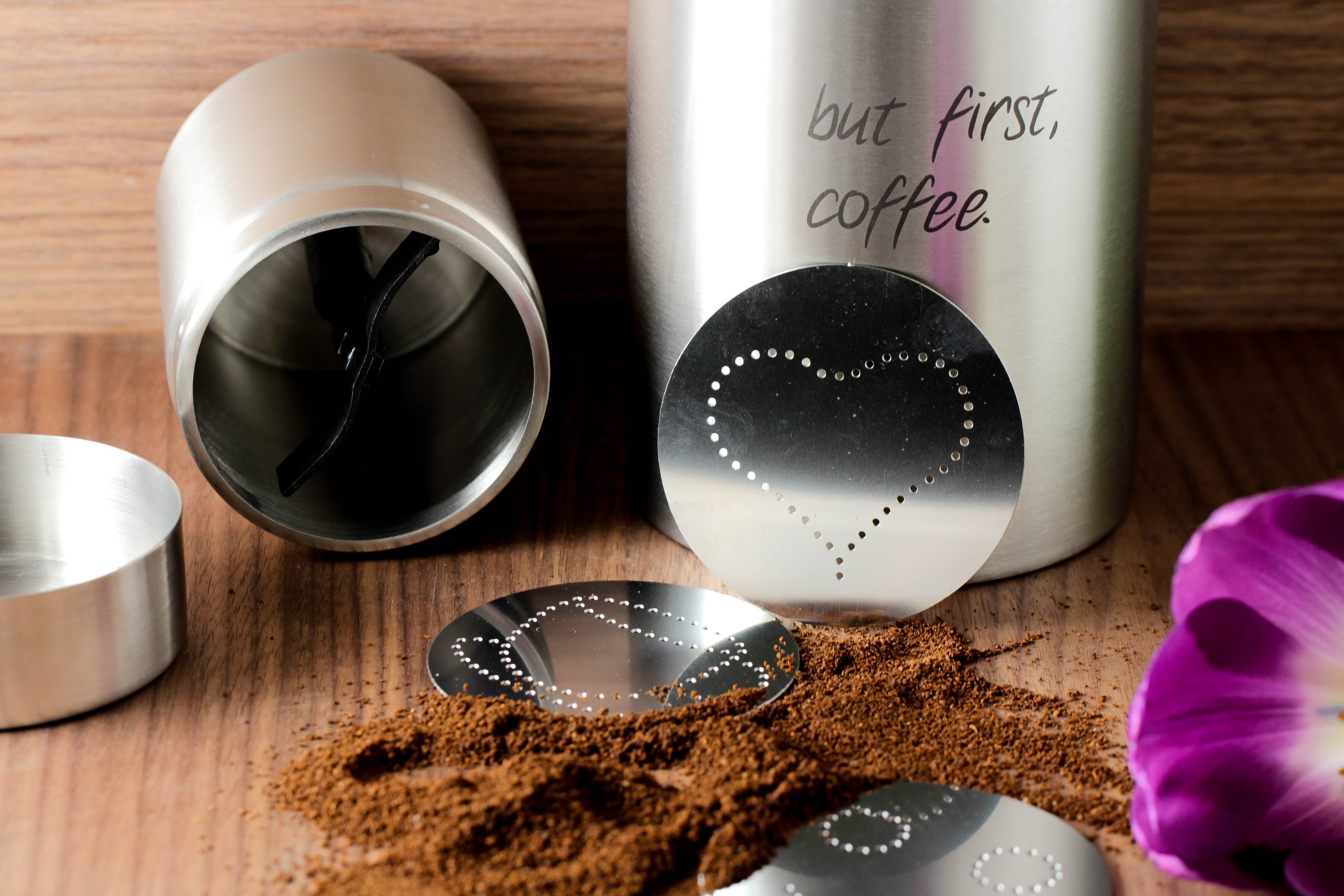 Damit Kaffeepulver, Kaffeepads oder Kaffeebohnen nie wieder ihr Aroma verlieren! Die Kaffeedose mit Gravur der hochwertigen Tee- und Kaffeeproduktmarke LEOPOLD VIENNA garantiert einen langen Kaffeegenuss und überzeugt durch ihr schlichtes, zeitloses Design. Sie fasst 350g Kaffeepulver und lässt sich auch für die Aufbewahrung von Kaffeepads verwenden. Die gebürstete Edelstahlausführung ist rostfrei und gibt keine ungewünschten Stoffe an den Kaffee ab. Die Kaffeedose mit Aromaverschluss ist außerdem auch spülmaschinenfest.