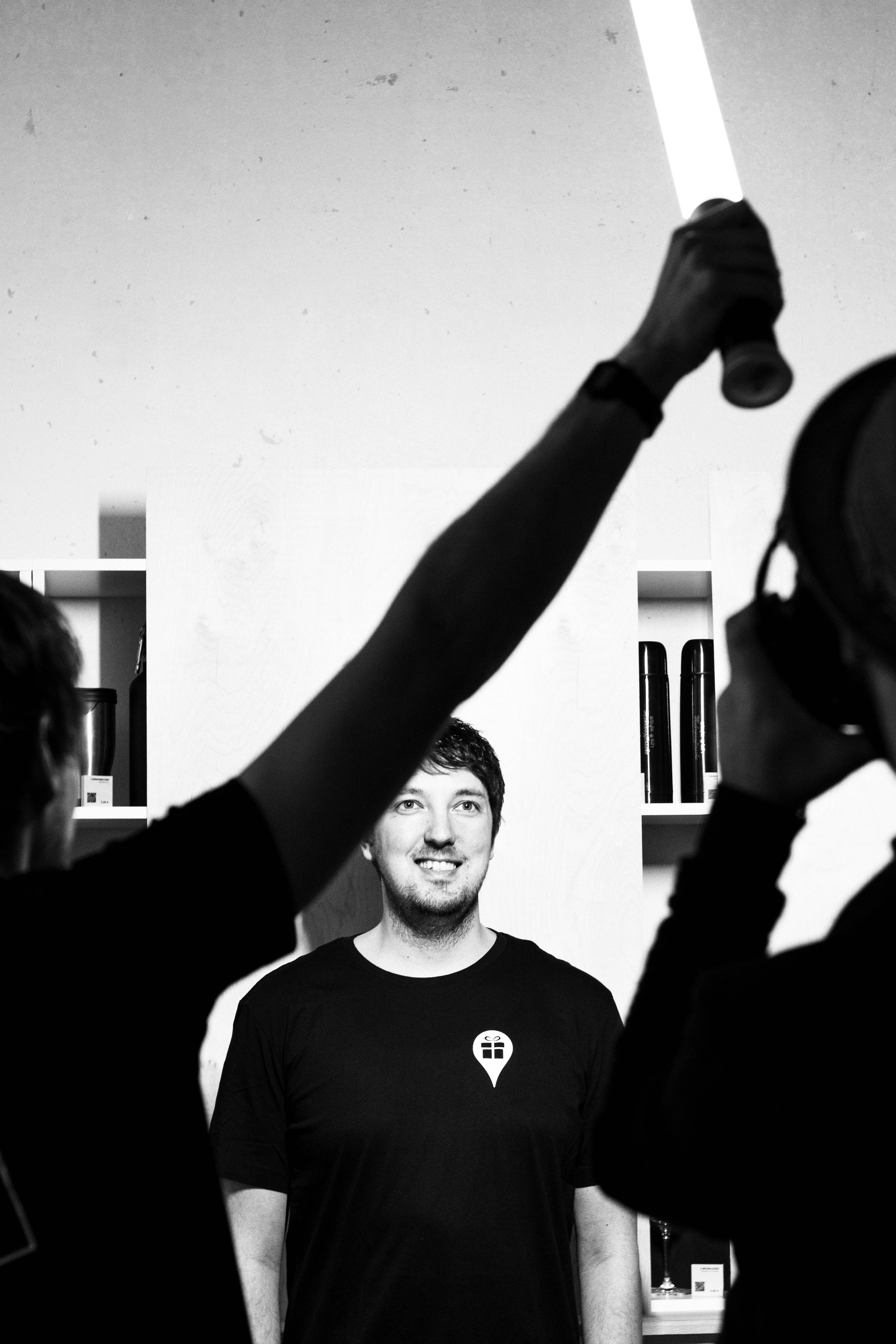 Immer wieder klicken wir uns durch unsere eigene Homepage. Ein kritischer Blick auf die eigene Außenwirkung und Gestaltung ist wichtig und so stellen wir auf unserer SIGNUU-Homepage fest: Es müssen endlich Team-Fotos her. Damit ihr ab sofort dem Telefonhörer, E-Mail-Schreiber oder Gravur-Konfigurator ein Gesicht zuordnen könnt. Mit der Kraft des Laserschwertes und einer selbstgebastelten Kulisse setzt unser befreundeter Leipziger Fotograf Robert die Kollegen direkt im Verkaufsraum in das richtige Licht. Die Ansagen des Fotografen sind klar: „Freundlich. Aber nicht so schelmisch grinsen. Charmant lächeln, bitte“. Gar kein Problem für uns. Vor allem nicht in den neuen SIGNUU-Teamshirts in schwarz. Wobei ein frisches Lindgrün sicher auch zu den Augenfarben gepasst hätte. In einer Stunde sind alle einzelnen Portraits in schwarzweiß und das witzige Gruppenfoto im Kasten. Gar nicht so einfach, so eine wilde Bande im Zaum zu halten! Wir freuen uns darauf euch bald die Ergebnisse auf unserer neu gestalteten „Über uns“-Team Seite zu präsentieren. Bis dahin bekommt ihr einen kleinen Vorgeschmack. Wir sagen: Danke an Robert Strehler Fotografie und danke an unsere mutigen Kollegen!