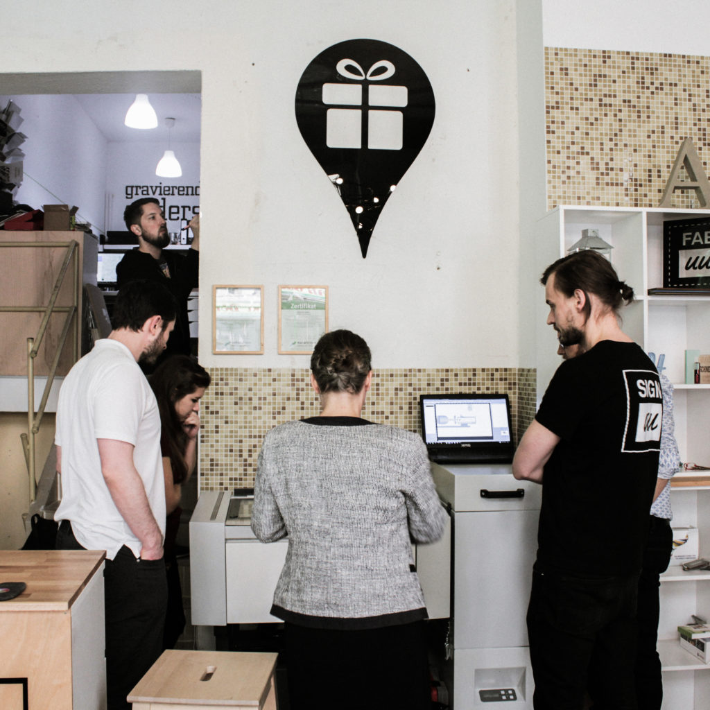 Feierabend? Noch lange nicht! Denn an diesem Abend bekommen wir Besuch zur Startup Safary Leipzig. Im Rahmen der zweitägigen Startup Tour durch Leipzig hieß es für uns zum Mittwochabend bei einem fröhlichen Zusammensein bei Bier und einer offenen Fragerunde: LASER ENGRAVING – MAKE IT UNIQUE! Wie funktioniert der Laser überhaupt? Wann kommt er an seine Grenzen? Welche Materialien kann er bearbeiten? Um dem kleinen aber interessierten Kreis nicht nur staubtrockene Theorie zu liefern, sondern auch die Möglichkeiten der Lasertechnologie umfassend zu zeigen, stand unser Laser bereit für die neugierigen Augen. Natürlich durfte jeder seinen persönlich gestalteten Schlüsselanhänger mitnehmen. Für so viel Interesse an unserem Lasergravur Startup sagen wir: DANKE! Noch mehr Informationen zu uns findet ihr auf unserer neu gestalteten Homepage.