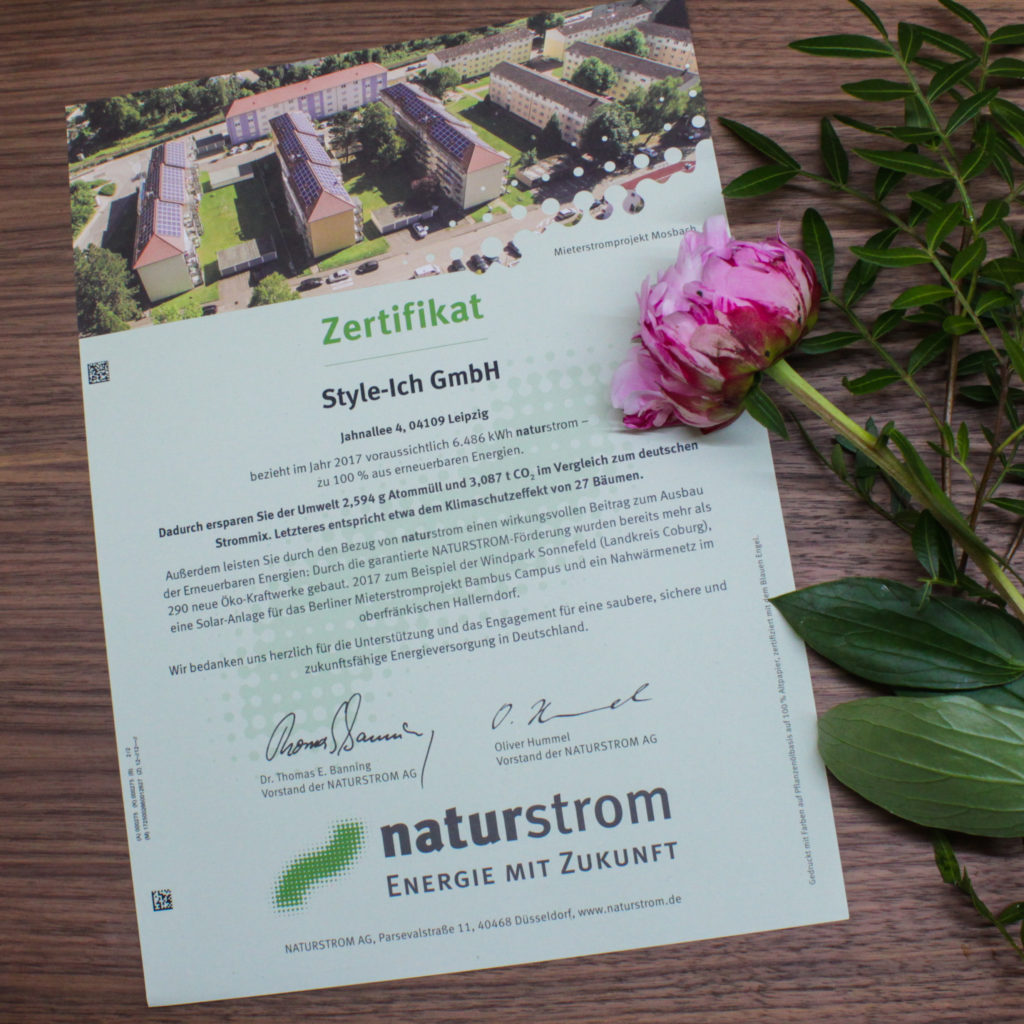 Auf dieses Zertifikat der NATURSTROM AG sind wir richtig stolz. Wir setzen auf eine saubere, sichere und zukunftsfähige Energieversorgung und finden den Ausbau der Erneuerbaren Energien richtig gut. Im Jahr 2017 beziehen wir mit unserem Lasergravur-Store auf der Jahnallee voraussichtlich 6.486 kWh naturstrom aus 100% erneuerbaren Energien und zwar aus Wasser- und Windkraftwerken in Deutschland. So werden Umwelt und Klima geschont und die Wirtschaft vor Ort gestärkt. Dies entspricht einem Klimaschutzeffekt von 27 Bäumen. Damit bewahren wir die Umwelt vor 2,594 g Atommüll und 3,087 CO2. Sehr nice! Macht mit unter: www.naturstrom.de